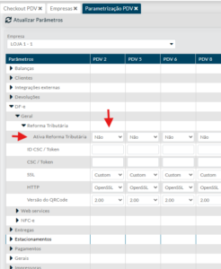 Caso estiver Atualizado acessar a aplicação de Parâmetros PDV > Selecionar a Loja > DF-e > Geral > Reforma Tributária > Ativar Reforma Tributária, colocar Sim.