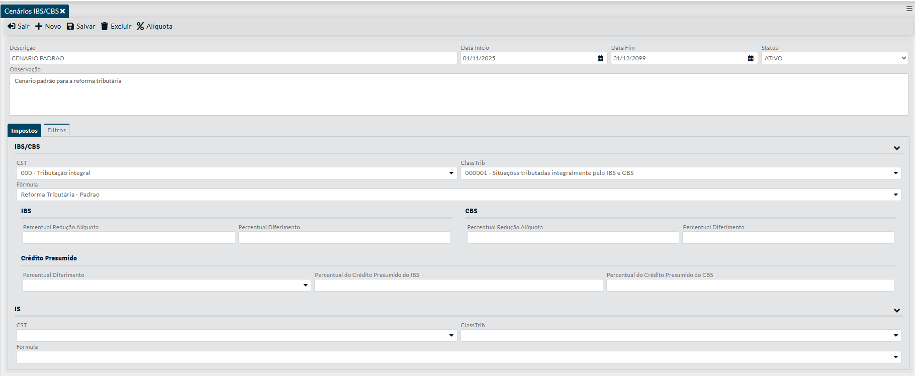 Essa aplicação foi desenvolvida para criar cenários para a nova reforma tributária com os impostos de IBS/CBS e IS .