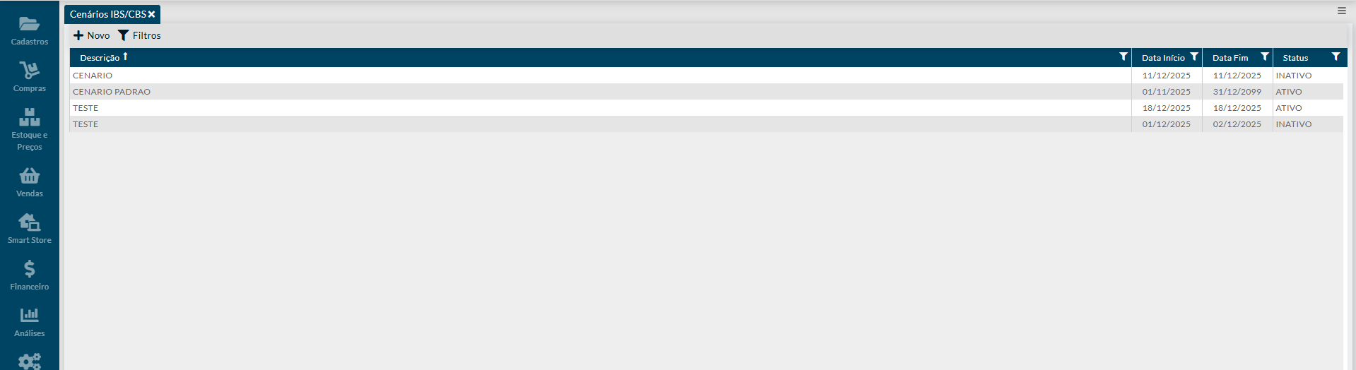 Será apresentado a tela acima, nela para cadastrar um novo cenário clique em “Novo”.